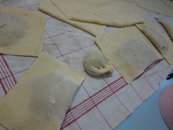 然後包水餃的時候,竟然給我包出義大利方餃這種形狀,